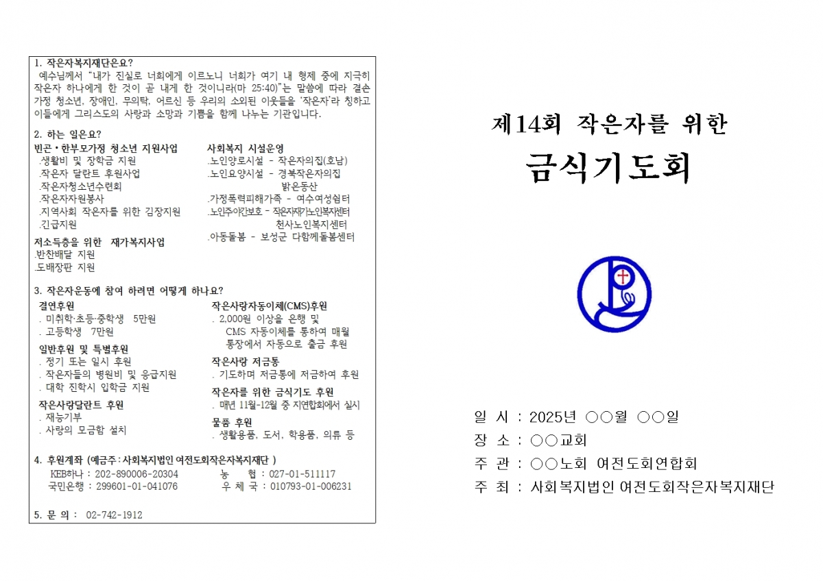 제14회 작은자를 위한 금식기도회 순서지