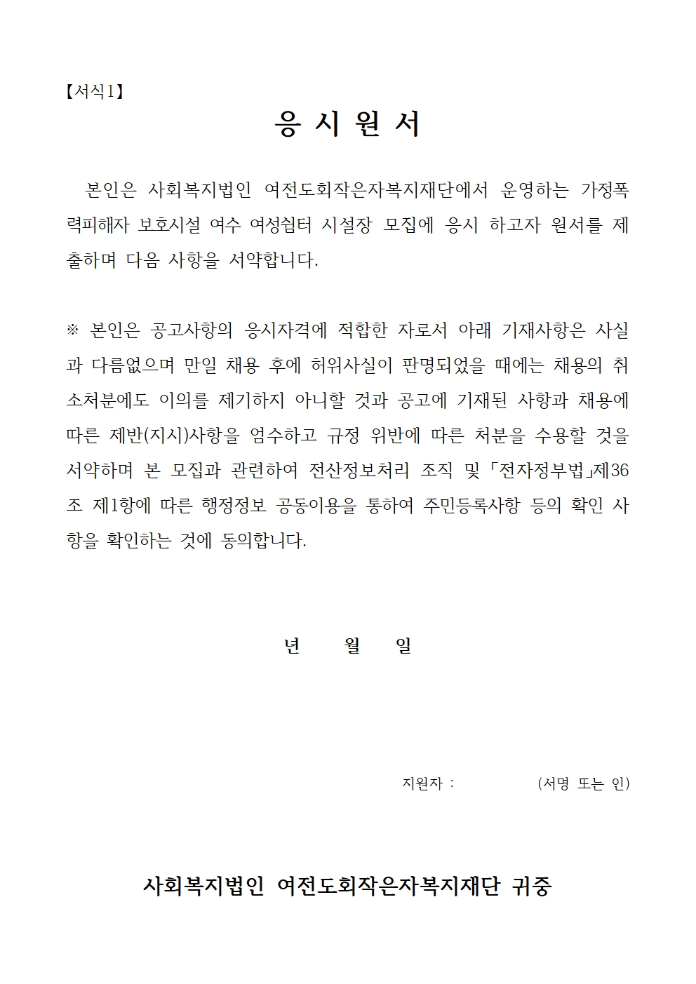 여수여성쉼터 센터장 응시원서 및 서류.hwp